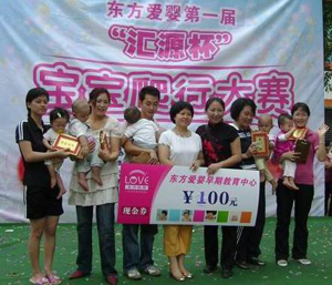 由匯源集團(tuán)獨(dú)家贊助的、東方愛嬰早教中心主辦的“匯源杯”寶寶爬行大賽于2008年11月2日上午在廣晟廣場(chǎng)舉行。此次活動(dòng)報(bào)名踴躍,共有108名出生5個(gè)月至12個(gè)月的寶寶報(bào)名參賽。賽場(chǎng)熱鬧非凡,笑聲掌聲不斷,吸引了不少未報(bào)名參賽寶寶的家長前來觀看,普遍稱贊活動(dòng)有特色,能讓小寶寶增長見識(shí),最主要的是能加深親子關(guān)系,喚起家長們重視早教的意識(shí)。經(jīng)過分組賽、決賽,最終決出一等獎(jiǎng)3名、二等獎(jiǎng)6名、三等獎(jiǎng)9名。