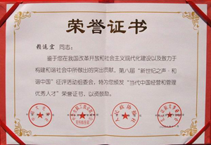 賴運宏董事長榮獲“當代中國經(jīng)營和管理優(yōu)秀人才”光榮稱號
