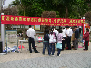 2008年3月29日,匯源珠寶公司組織志愿隊(duì)到連平縣城開展義務(wù)服務(wù)活動,受到當(dāng)?shù)鼐用竦臒崃覛g迎。