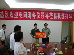 在慶祝建軍81周年之際,匯源集團(tuán)一如繼往,在賴(lài)運(yùn)宏董事長(zhǎng)的帶領(lǐng)下,組織了10人的慰問(wèn)團(tuán),前往源城區(qū)武裝部進(jìn)行慰問(wèn)活動(dòng)。慰問(wèn)團(tuán)給源城區(qū)武裝部送上了10000元的慰問(wèn)金,并給每位官兵送上了一份充分體現(xiàn)軍民漁水情的紀(jì)念品。
