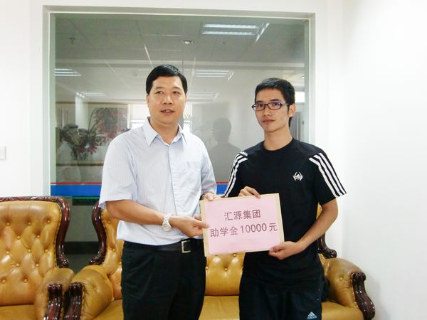 2010年8月31日,匯源集團董事長賴運宏向和平縣東水鎮(zhèn)宋洞村葉志華送上10000元助學金。葉志華來自農(nóng)村貧困家庭,人窮志不窮的他,于今年考上了中山大學。但是,讀大學的費用,讓這個本已陷入困境的家背負起了更大的壓力。董事長賴運宏獲悉消息后,第一時間伸出了援助之手,及時為葉志華送上10000元助學金,并表示將為葉志華承擔大學四年的學費。賴運宏對葉志華說:“在大學要樹立理想目標,加強鍛煉,學有所成為和平山區(qū)爭光,為河源爭光。同時,要常懷感恩之心,要以自己的實際行動感謝社會上關心幫助過自己的人,要成為一個對社會有用的人才,以后力所能及地幫助社會上需要幫助的人。”最后,董事長賴運宏也希望廣大市民可以一起幫助身邊需要幫助的人,為打造和諧河源奉獻自己的一份力。