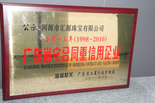 熱烈祝賀匯源珠寶有限公司連續(xù)十三年榮獲“廣東省守合同重信用企業(yè)”