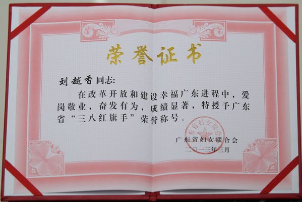 熱烈祝賀劉越香副董事長(zhǎng)被授予廣東省“三八紅旗手”榮譽(yù)稱號(hào)。