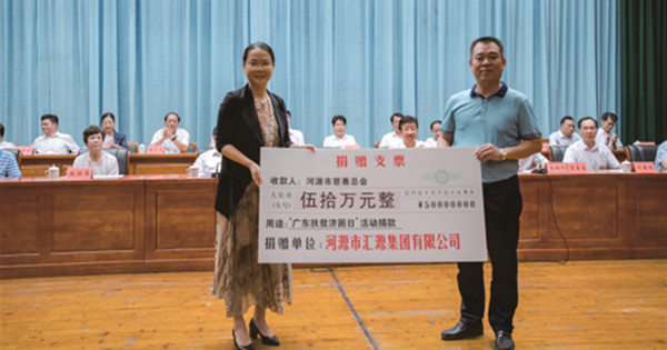 2018年廣東扶貧濟困日匯源集團榮獲愛心金獎并捐款50萬元。