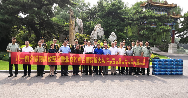 在建軍91周年來臨之際,賴運宏董事長前往武警北京釣魚臺國賓館大隊進行慰問活動,送去慰問品正能量山泉水,并向武警官兵致以節(jié)日的問候和崇高的敬意。